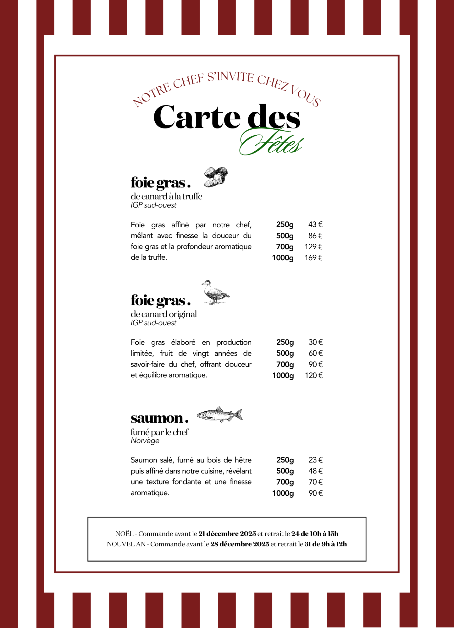 Le Chef s’invite à votre table pendant les fêtes.