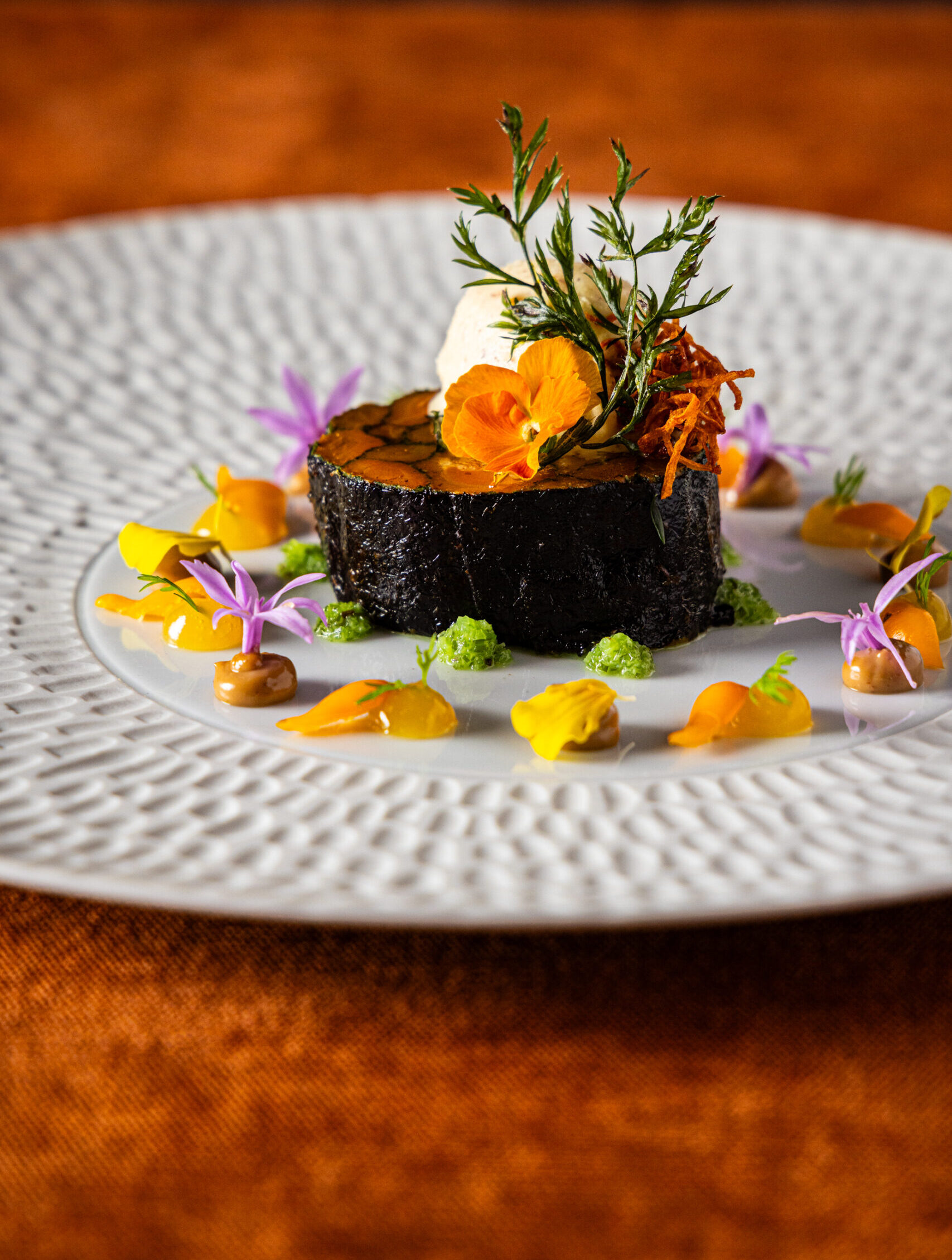 • Flamenquín de poulet à la truffe, jeunes légumes glacés 25