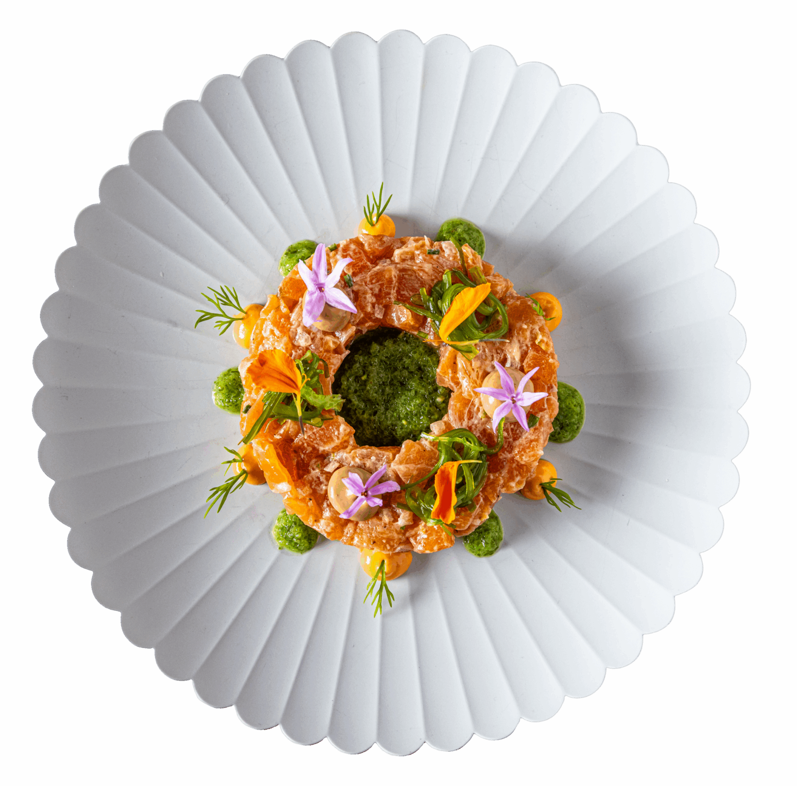 • CalamarAta de gambas “al ajillo”, bisque corsée, gel citron 29